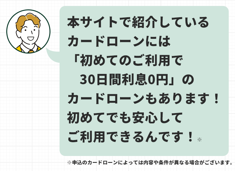 ※ 無利息期間は、はじめての方限定です。はじめての方なら最大で30日間無利息となります。